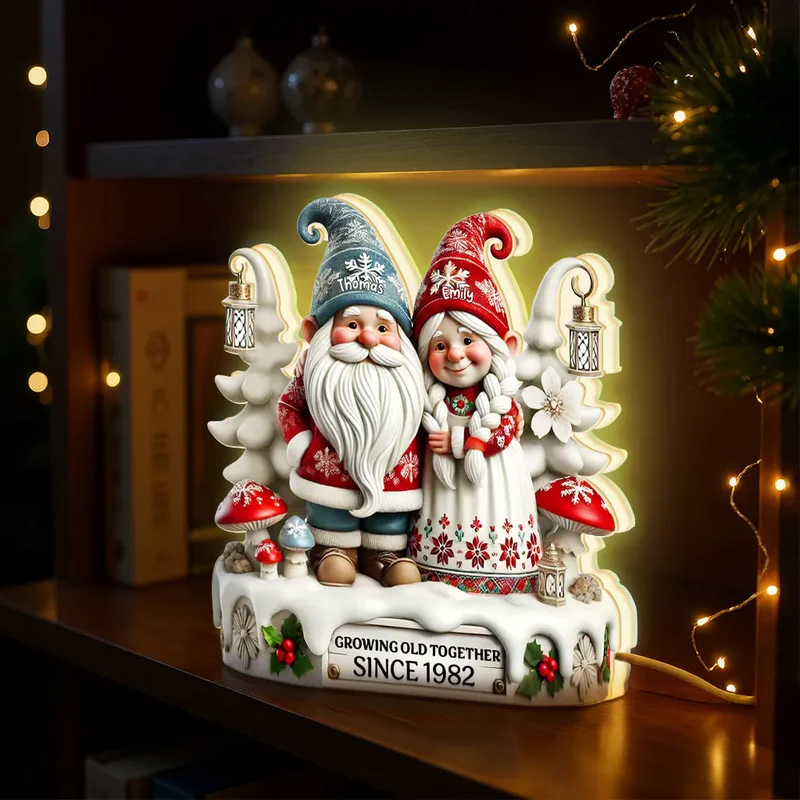 3D Effect Gnome Couple Together Christmas Personalized LED Light Box