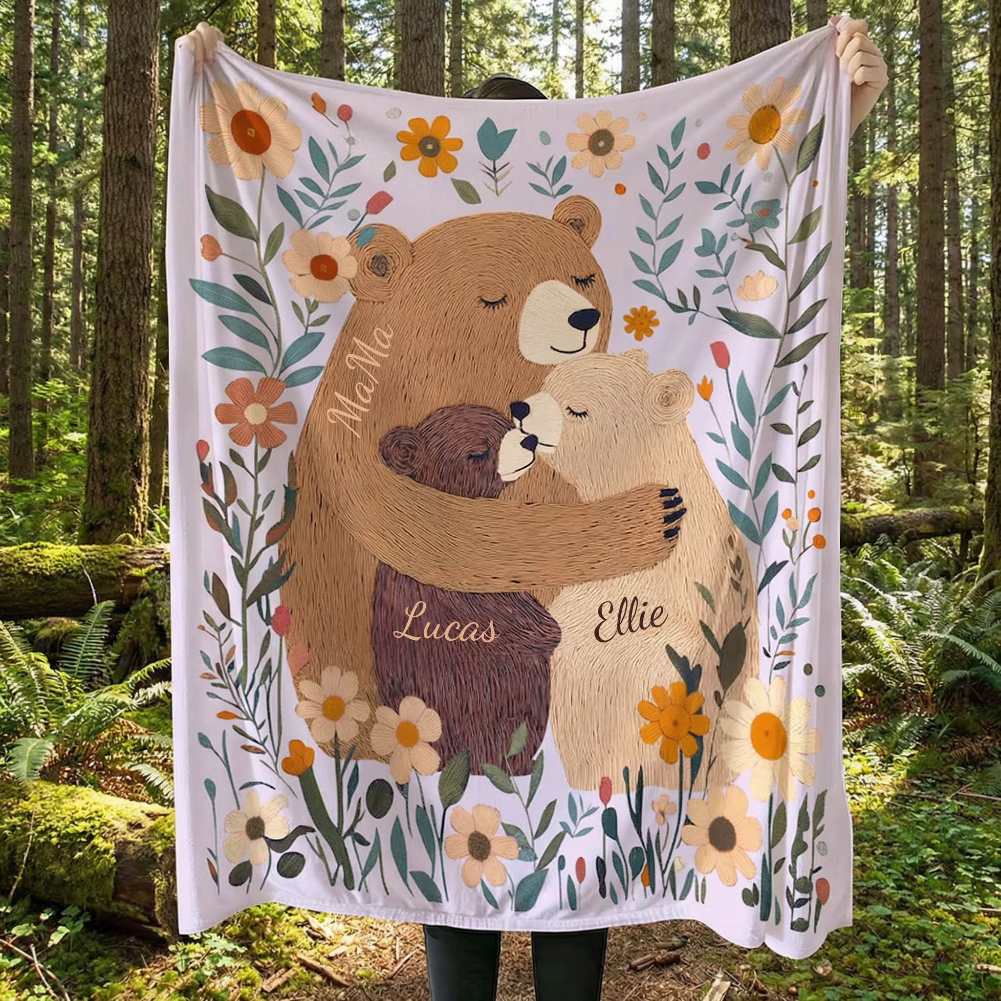 A Handcrafted Heirloom of Love: Personalized Mama Bear & Wildflower Blanket for Mom & Grandma