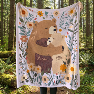 Wrap yourself or a cherished mother figure in the warmth of this exquisitely personalized blanket. Featuring a tender mama bear illustration paired with delicate wildflower accents, this handcrafted piece transforms into a meaningful keepsake. Each blanket is customized with names or dates, making it an ideal gift for moms, grandmothers, and maternal figures who deserve to feel celebrated. Crafted with attention to detail, this heirloom-quality blanket combines comfort with sentimental value—a timeless treasure that grows more precious with every use and memory shared.