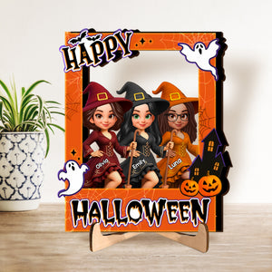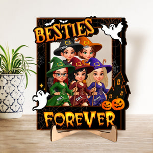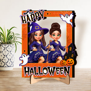 Besties Sisters Witch Photo Booth Frame Personalized 2-Layer Wooden Plaque