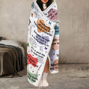 Birth Flower Book Lovers, Books Quotes - Personalized Wearable Blanket Hoodie