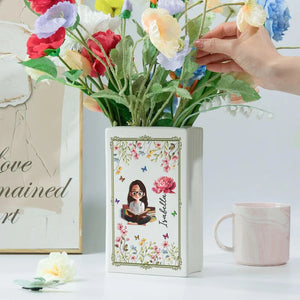 Birth Flower Book Lovers - Personalized Ceramic Book Vase