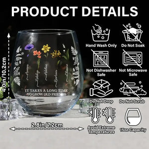 Birth Flower Grow An Old Friend Bestie - Personalized Stemless Wine Glass