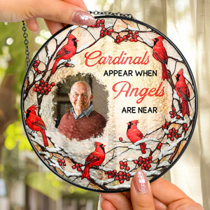 Cardinals Appear When Angels Are Near - Personalized Photo Stained Glass Window Hanging Suncatcher