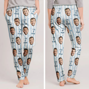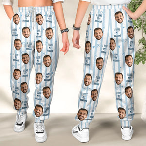 Couple Custom Photo Funny Stripe Background - Personalized Photo Sweatpants, Lounge Pants With Pockets