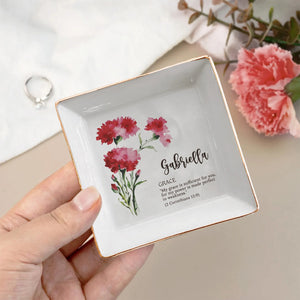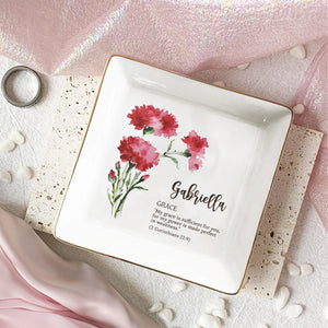 Custom Birth Flower Initial With Bible Verse - Personalized Jewelry Dish