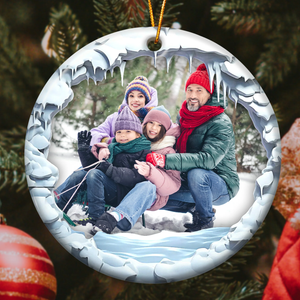 Custom Photo Family Christmas - Personalized Ceramic Photo Ornament