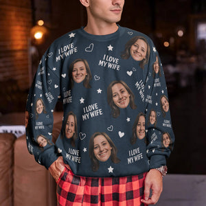 Turn your treasured memories into a laughter-filled keepsake with these Custom Photo Funny Face I Love My Lover - Personalized Matching Sweaters. These are not just articles of clothing, they are unique pieces that encapsulate shared moments and heartfelt memories. By adding your memorable pictures, each sweater becomes a special love token perfectly crafted for couples, especially for a husband and wife who share a good sense of humor. They serve as wonderful surprise gifts for various events, whether it's for a birthday, Christmas, an anniversary, or simply to celebrate your love every day!