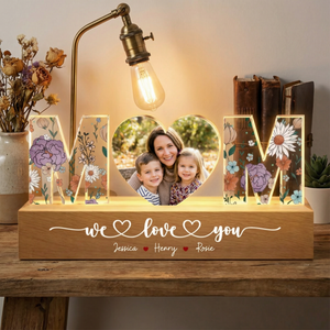 Illuminate cherished memories with this personalized LED night light, custom-crafted with your favorite photo and your children's names. Featuring a premium optical acrylic light panel mounted on a warm wooden base, this USB-powered lamp creates a soft, ambient glow perfect for bedside tables or nurseries. An ideal Mother's Day gift that combines functionality with heartfelt personalization, transforming any space into a warm sanctuary of love and light.