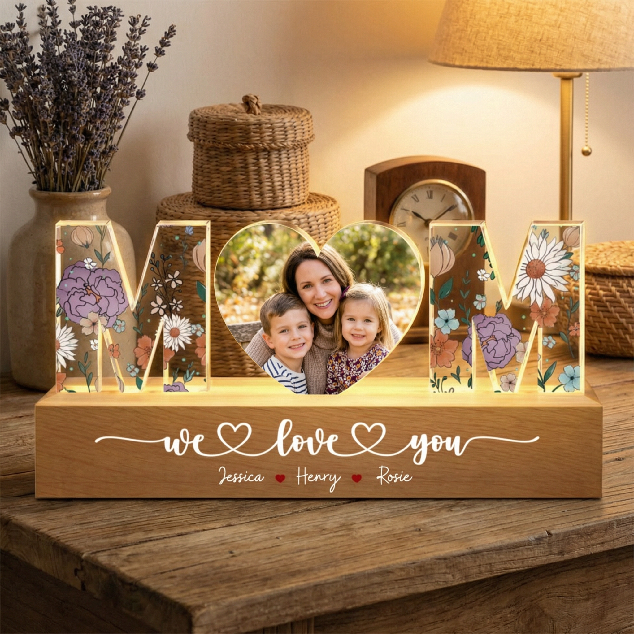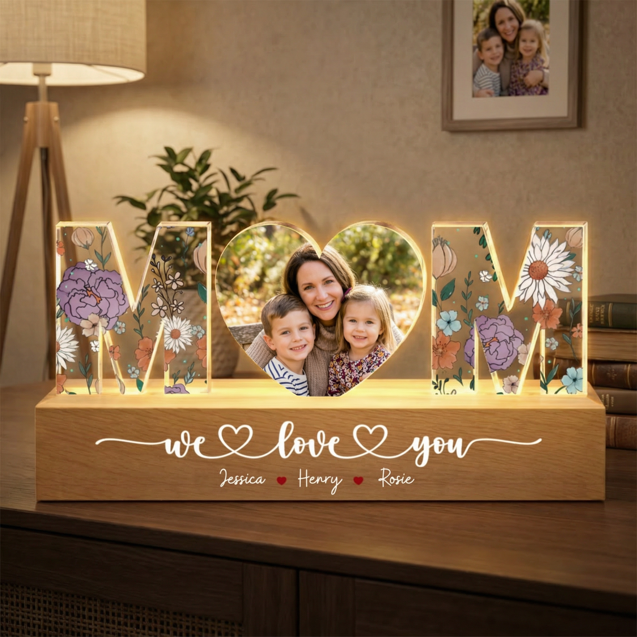 Custom Photo LED Night Light for Mom | Personalized with Kids' Names | Mother's Day Gift