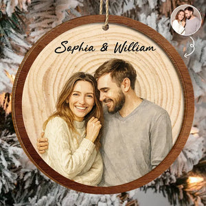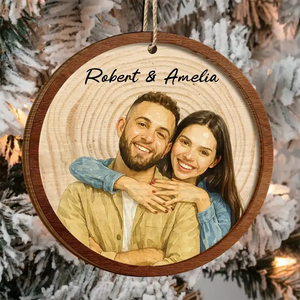 Custom Photo Realistic Watercolor Art Happy Couple - Personalized 2-Layered Wooden Ornament