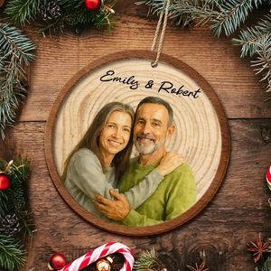 Discover romance with the Custom Photo Realistic Watercolor Art Happy Couple - Personalized 2-Layered Wooden Ornament. A thoughtful and sentimental gift for couples, husbands, wives, boyfriends, or girlfriends, this keepsake is perfect for Christmas, Weddings, Anniversaries, Valentine’s Day, Birthdays, or Mother’s and Father’s Day.