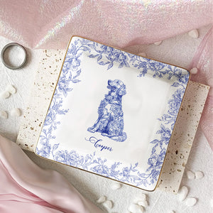 Immerse yourself in a tale of elegance and charm with our distinctively styled Dog Lover Gift Dog Breeds Chinoiserie Toile De Jouy Style Square Jewelry Dish. Crafted for those with an unwavering passion for their furry friends, this eye-catching piece is sure to strike a chord with dog lovers and pet enthusiasts alike. It's a tangible representation of the strong bond and resemblance between a pet and its owner, making it an excellent choice for gift-giving. Perfect for birthdays, anniversaries, Christmas, or any occasion that calls for a thoughtful gesture.