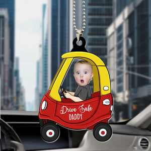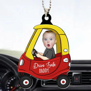 Drive Safe Daddy - Custom Photo Car Ornament - Gift For Family Members