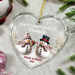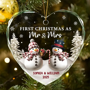 First Christmas As Mr & Mrs Snowman - Personalized Heart Shaped Glass Ornament