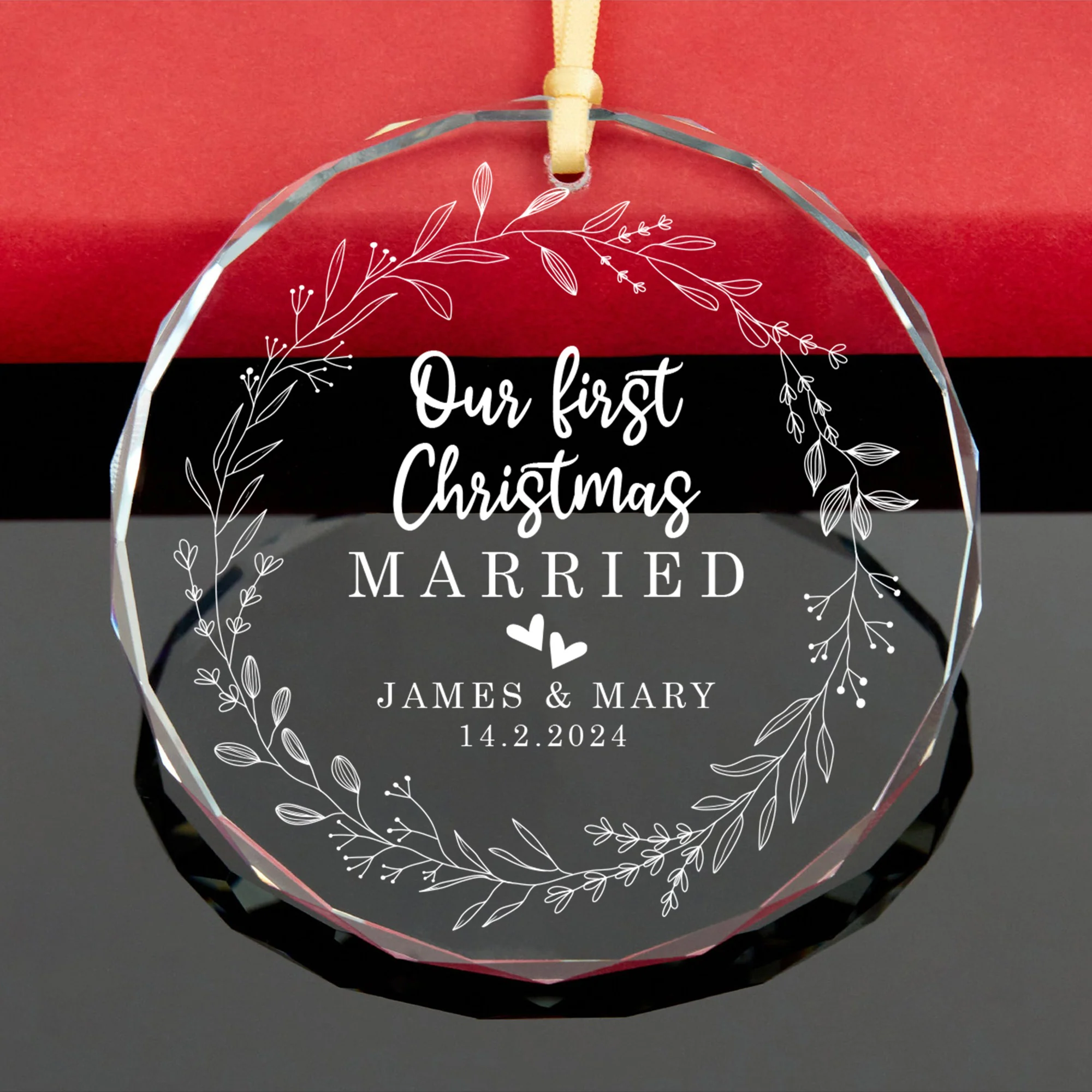 First Christmas Married Engaged Couples - Personalized Glass Ornament