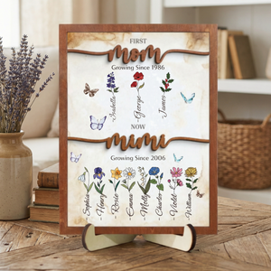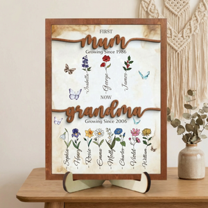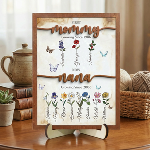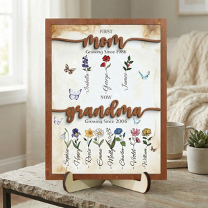 Celebrate the journey from motherhood to grandmotherhood with this thoughtfully personalized sign. Featuring a custom birth month flower paired with your children's names, this piece honors the special bond between generations. Perfect for displaying in a garden, entryway, or cherished space, it combines sentimental value with elegant design. Each sign is customized to reflect your unique family story, making it an ideal gift for the woman who has given so much. A meaningful keepsake that captures life's most precious milestones.