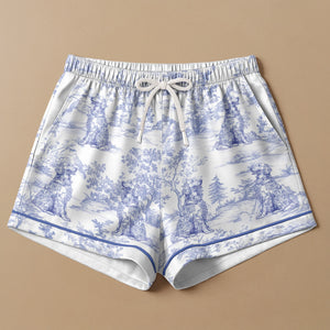 Indulge in comfort and style with our Floral Dog Toile De Jouy Custom Breads French Style - Personalized Short Satin Pajama Set. It's an ideal way for dog lovers to express their love for their four-legged companions, all while benefiting from the soft and luxurious feel of satin. Perfect for birthdays, Christmas, anniversaries, or any special occasion, this unique pajama set is more than a stylish nighttime option; it's a show of affection for pets that adds a personal touch to your relaxation time.