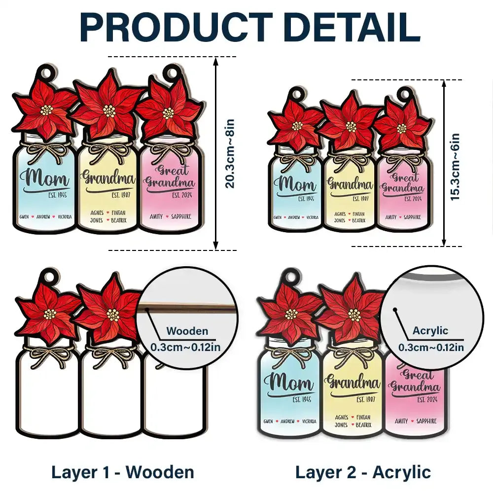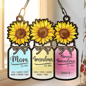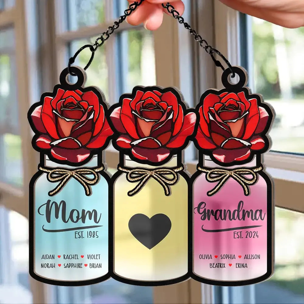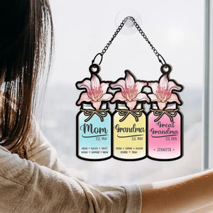 Flower Mason Jar Mom Grandma Great Grandma - Personalized Window Hanging Suncatcher Ornament