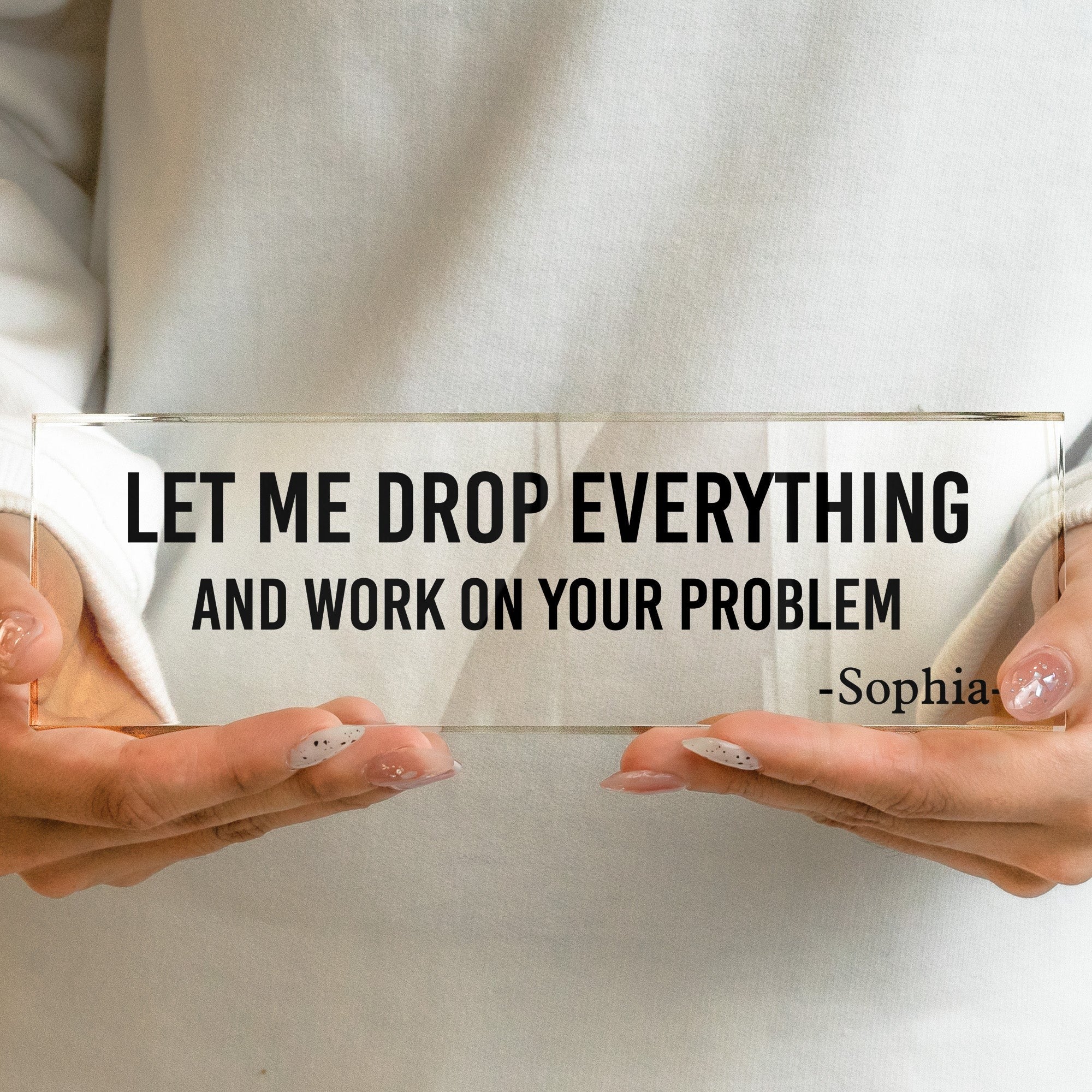 Perfect for Christmas, anniversaries, or any casual gift-giving occasion. The message feature allows you to add personal touches, making it even more special to those who receive it. It’s more than just a gift, it's a brilliant conversation starter, and it never fails to tickle anyone's funny bone. Don't hold back, bring a piece of joy to your workday or surprise your coworkers with this personalized Name Plate! It's sure to turn good vibes all around you! Step up your office decor game and order now!