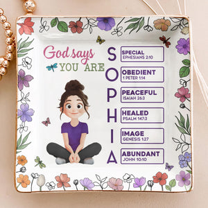 God Says You Are Cartoon Custom Name Letter In Bible - Personalized Jewelry Dish