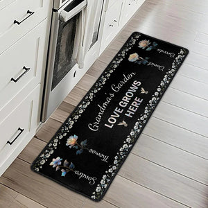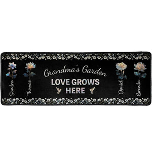 Grandma's Garden Love Grows Here Birth Flower Stained Glass - Personalized Runner Rug