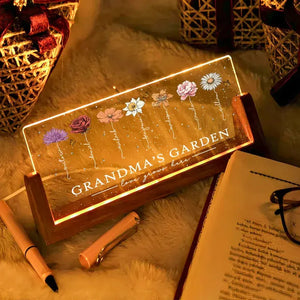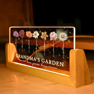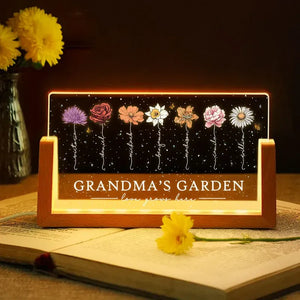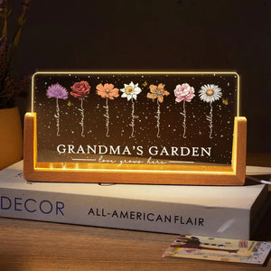 Grandma's Garden Love Grows Here Birthmonth Flowers Personalized U-Base Acrylic LED Night Light, Grandkids Names Floral Gift
