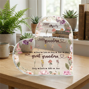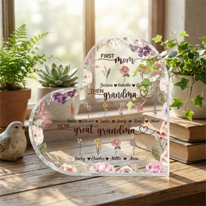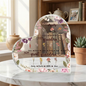 Her Blossoming Legacy is a personalized acrylic heart plaque designed to honor the maternal figures who shaped your family's story. This keepsake features custom engraving that celebrates multiple generations of mothers, creating a meaningful tribute to their enduring influence. Crafted from premium acrylic with elegant heart-shaped design, it serves as a lasting display piece for homes, offices, or cherished spaces. Perfect for Mother's Day, family milestones, or as a heartfelt gift that acknowledges the strength and love passed down through generations. A sophisticated way to preserve family heritage and express gratitude for the women who built your legacy.