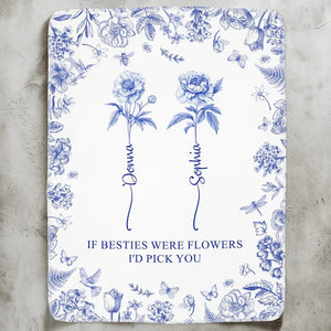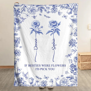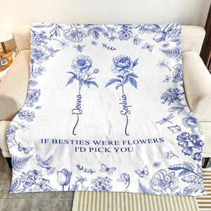 If Besties Were Flowers I'd Pick You - Custom Birth Flower Toile De Jouy - Personalized Blanket
