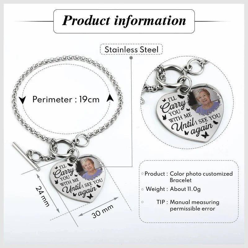 I'll Carry You With Me - Personalized Photo Heart Bracelet