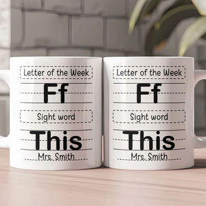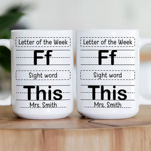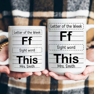 Celebrate the amazing teachers in your life with our "Letter Of The Week F This - Personalized Mug". This unique and thoughtful mug is a delightful way to express admiration and gratitude toward the educators that make a difference. Perfect for school occasions, birthdays, Christmas, anniversaries, Teacher Appreciation Day, or any occasion, this mug is sure to bring a smile to any teacher’s face. With its playful "Letter Of The Week" design, it not only serves as a daily essential but also adds fun and joy to their teaching journey.