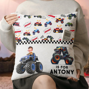 Monster Truck Alphabet Letters - Personalized Photo Pocket Pillow (Insert Included)