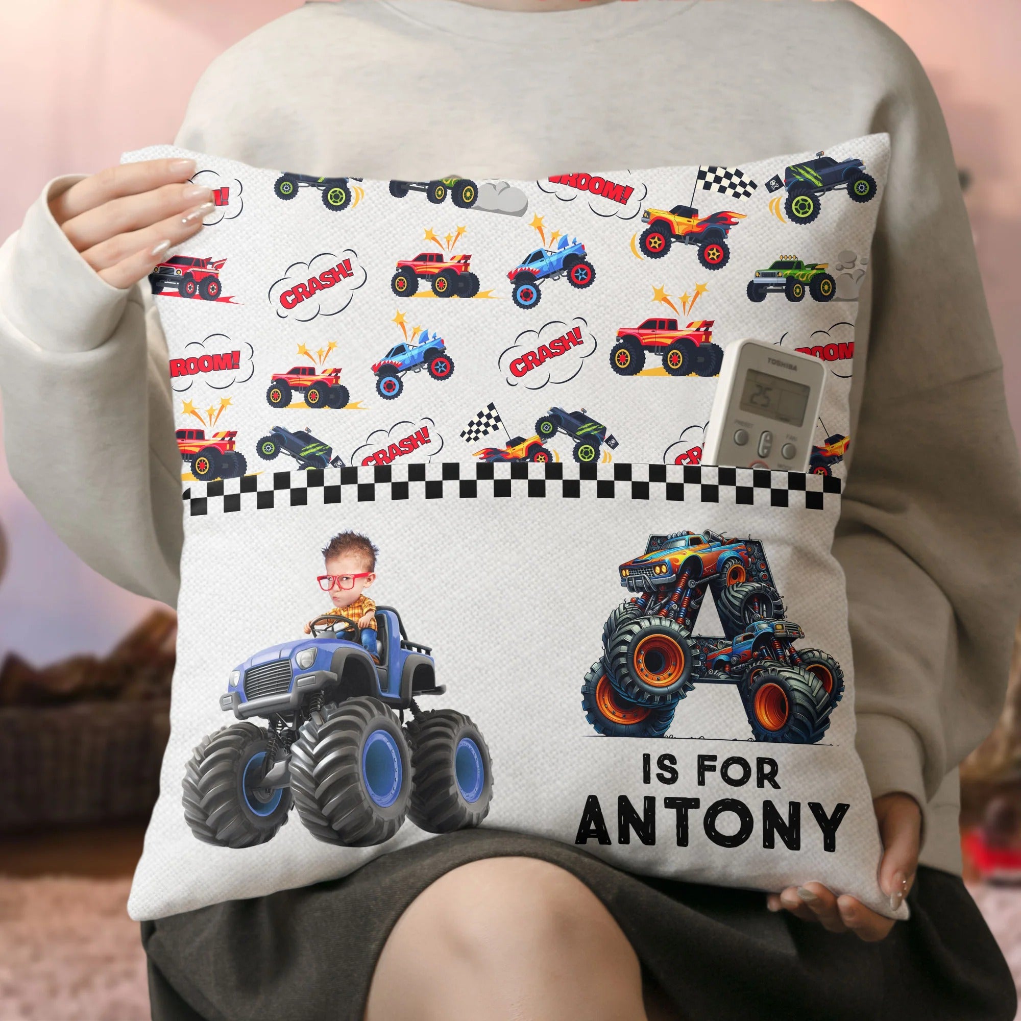 Looking for a unique, thoughtful, and personal gift for your kid or family member? Our Monster Truck Alphabet Letters - Personalized Photo Pocket Pillow (Insert Included) is the perfect choice! This pocket pillow provides a way to hold onto cherished memories by featuring a spot to put your favorite photo in. It’s a great gift that blends sentiment and functionality, perfect for birthdays, Christmas, anniversaries or any occasion.