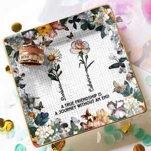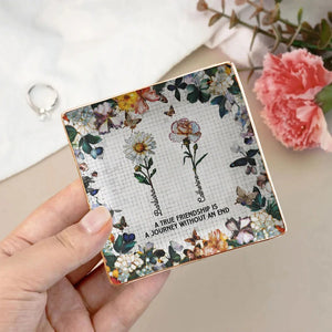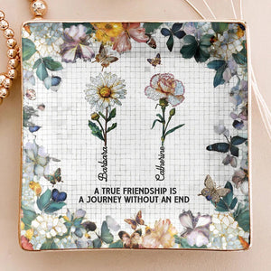 Mosaic Style Birth Flowers A True Friendship Is A Journey - Personalized Jewelry Dish