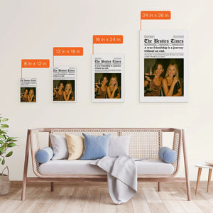 Cherish and preserve your special memories with our custom Poster product: "Newspaper The BFF Times". This unique poster serves as an exquisite reminiscence of those beautiful moments spent with your best friend. It's not just a regular poster; it's a canvas for your heartwarming memories, where you can upload your favorite photo of you and your bestie. This sentimental product is a perfect embodiment of your friendship - a testament to shared secrets, shared dreams, and shared experiences.