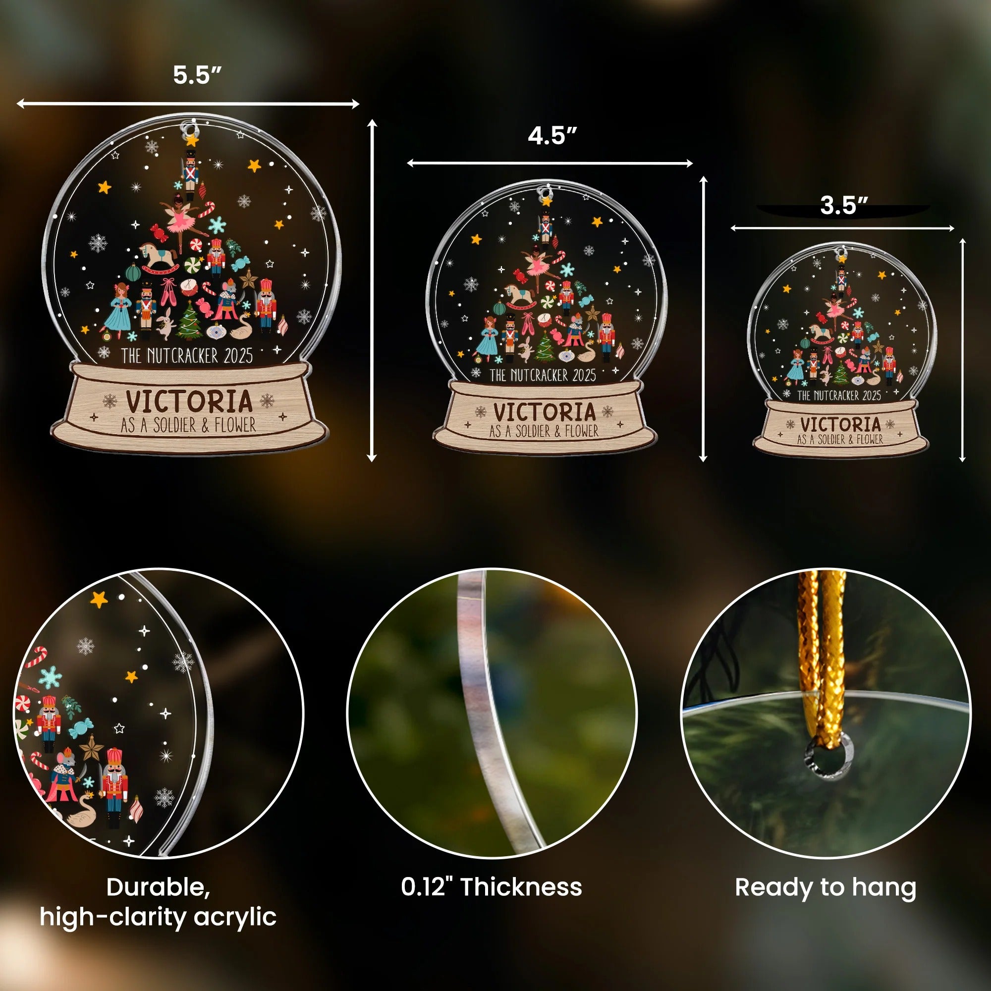 Nutcracker Christmas Snow Globe Ornament - Gifts For Kids (Up To 8 Roles) - Personalized Acrylic Ornament