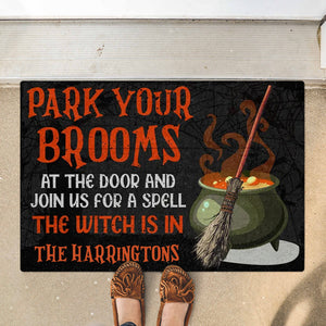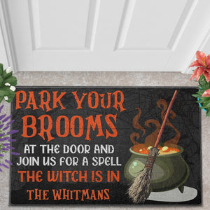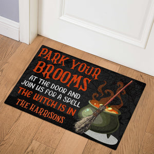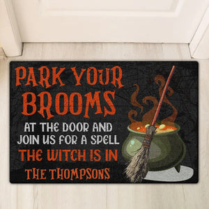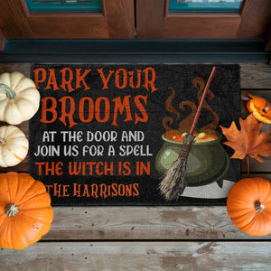 Park Your Brooms And Join Us For A Spell - Personalized Decorative Mat, Halloween Ideas