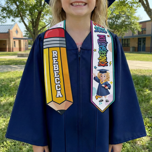 Celebrate your little graduate's milestone with this charming personalized graduation stole. Customized with your child's name, this soft sash adds a special touch to preschool and kindergarten graduation ceremonies. Perfect for photos and keepsakes, it makes the occasion feel truly memorable. Ideal for creating lasting memories of this important achievement.