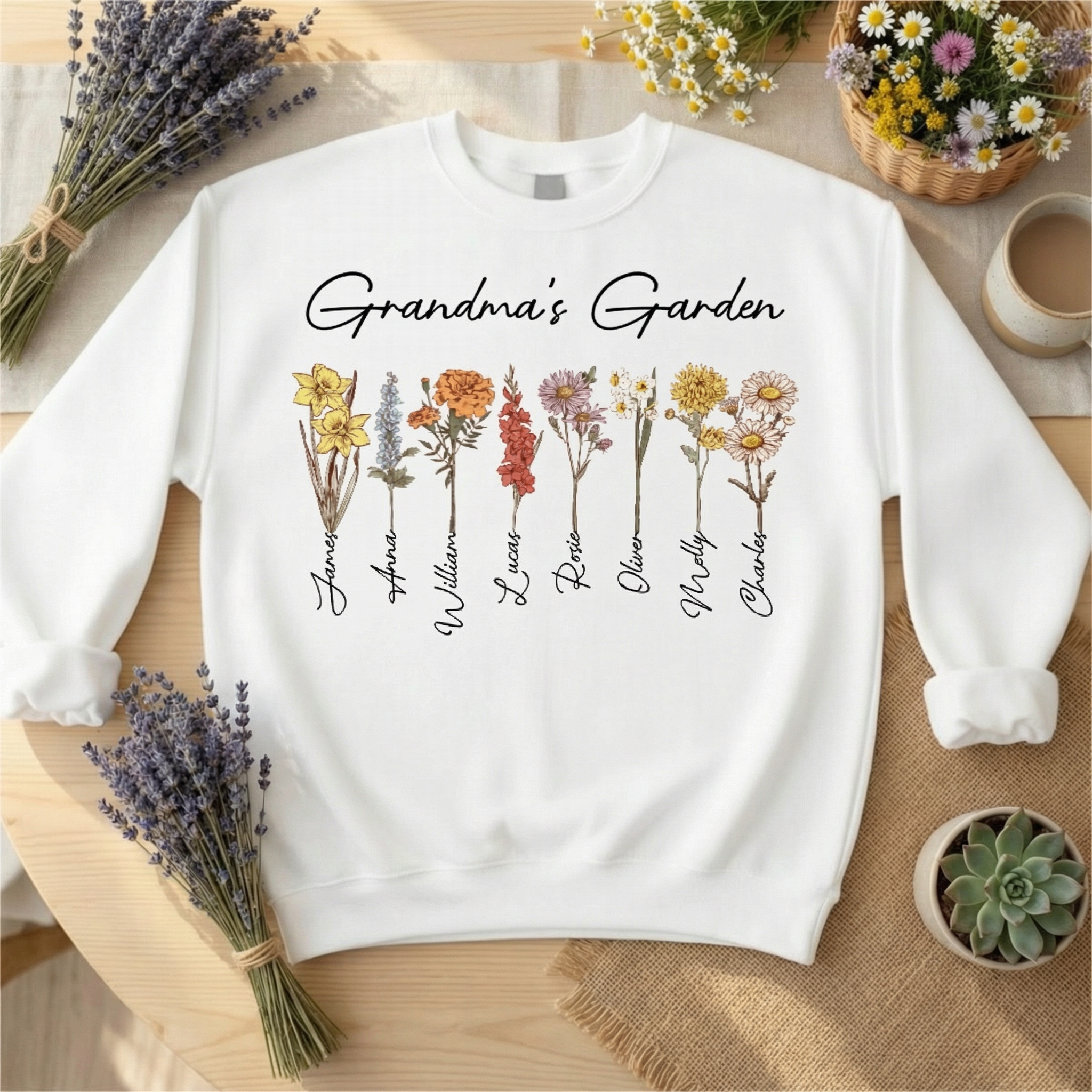Personalized 'Grandma's Garden' Sweatshirt | Custom Birth Flower Gift for Mom & Grandma | Mother's Day