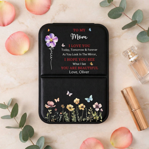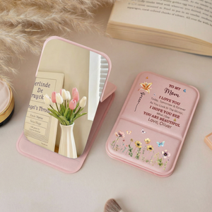 Carry cherished memories in style with this elegant personalized leather pocket mirror. Perfect for Mother's Day or any special occasion, this compact accessory features a custom engraving that makes it a heartfelt gift from grandkids to mom or grandma. The soft leather exterior protects a clear mirror, ideal for touch-ups on the go. Each piece is thoughtfully personalized to create a lasting keepsake that celebrates the bond between generations. A practical yet sentimental gift that she'll treasure for years to come.