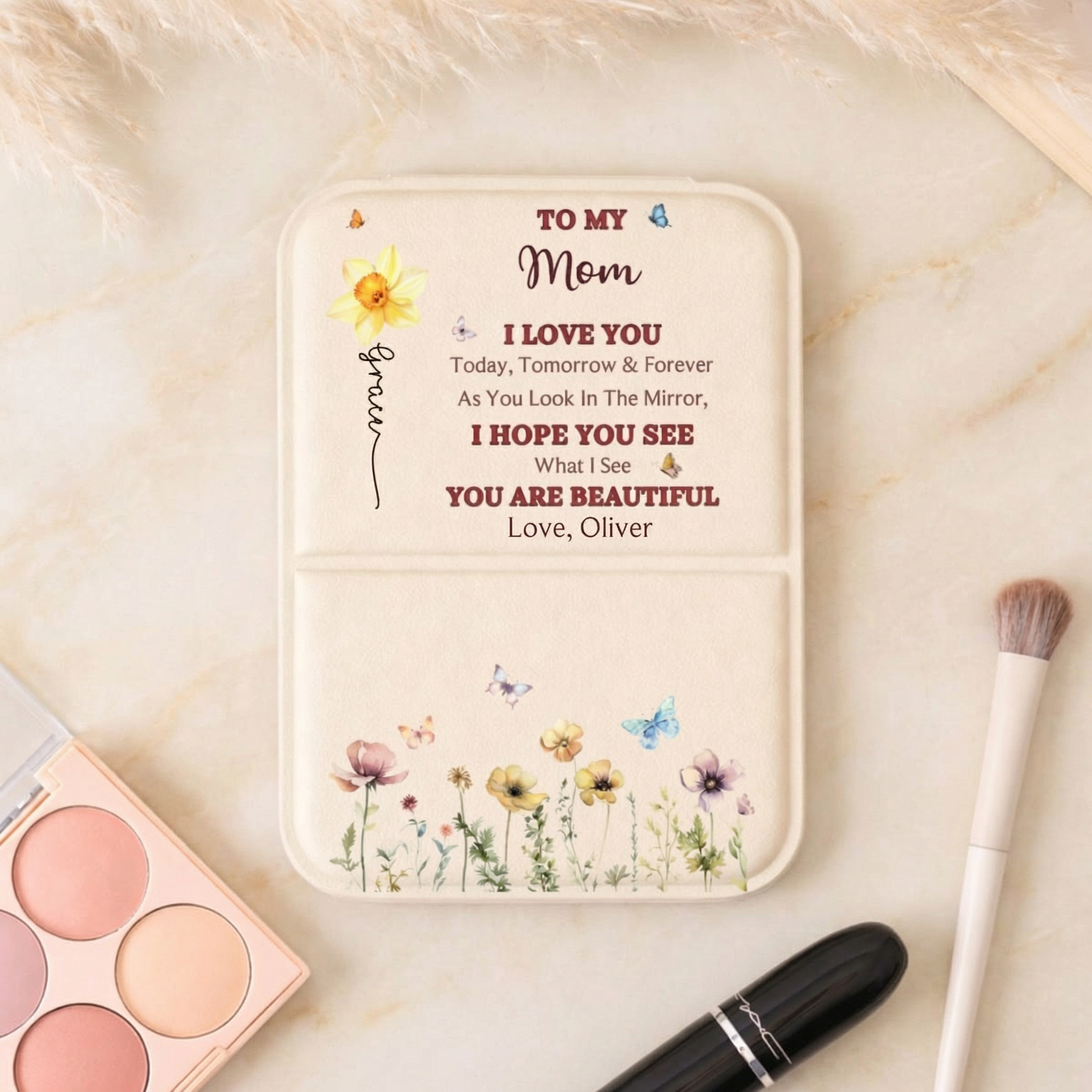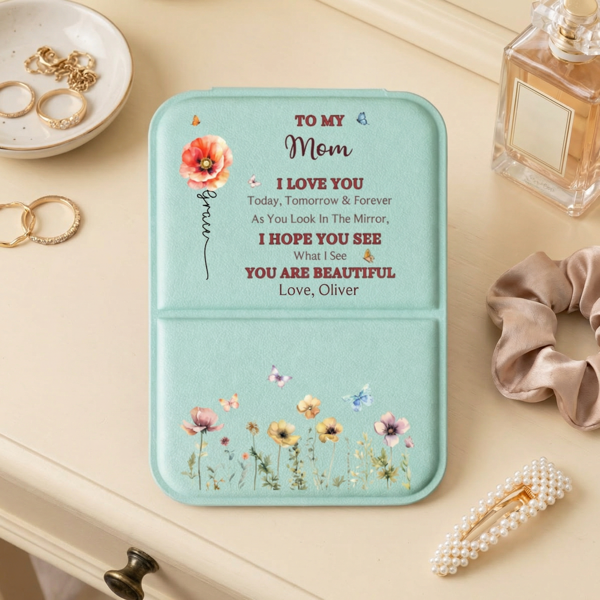 Personalized Leather Pocket Mirror for Mom & Grandma | Custom Mother's Day Gift from Grandkids