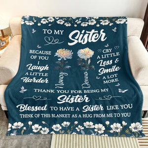 Thank You For Being My Sister Friend Flower Birthday Gift - Personalized Blanket