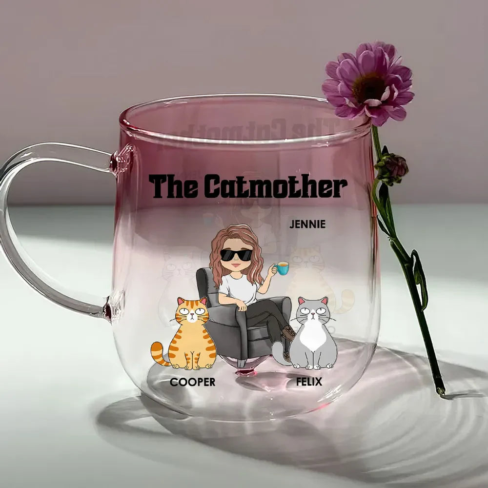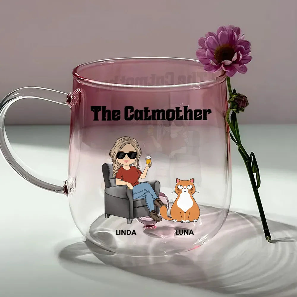 The Catmother - Personalized Custom Pink Gradient Glass Mug