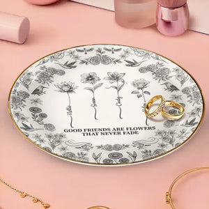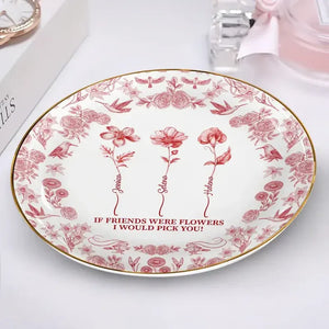 Toile De Jouy Birth Flower Grow An Old Friend - Personalized Round Ring Dish