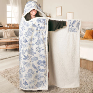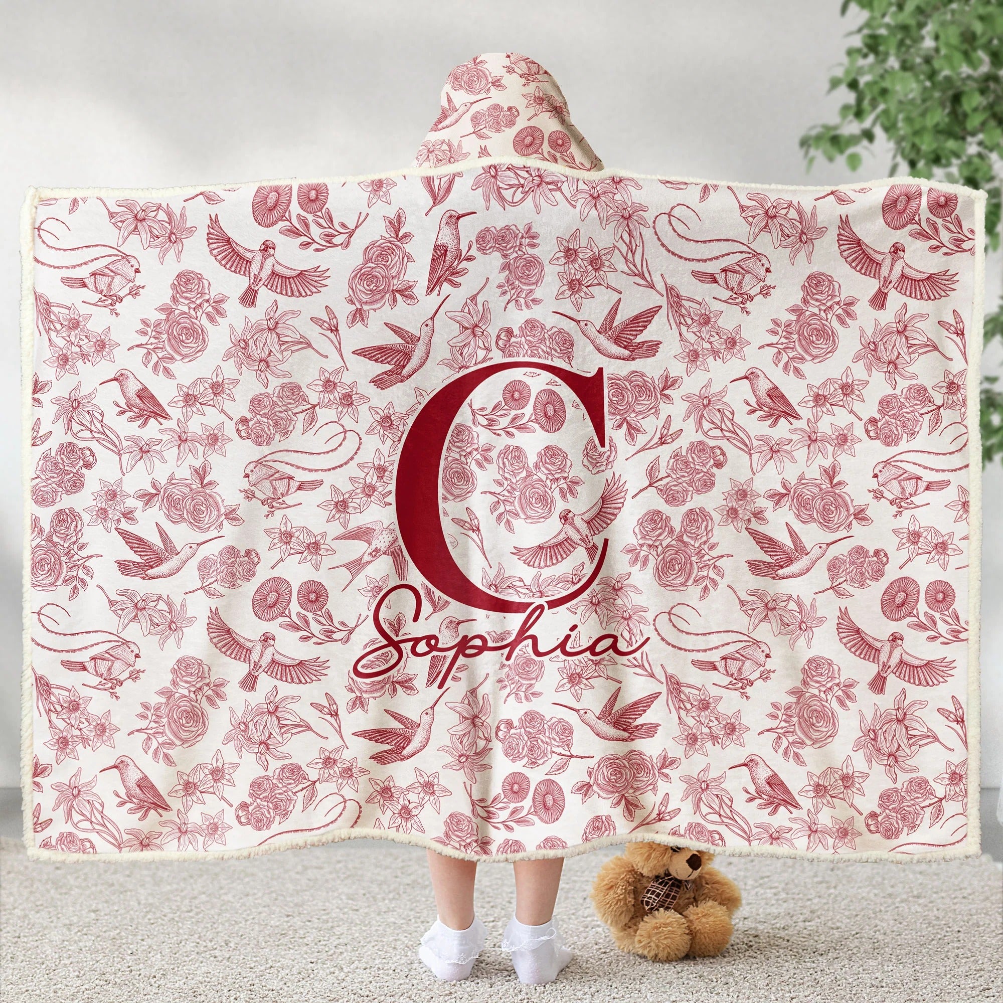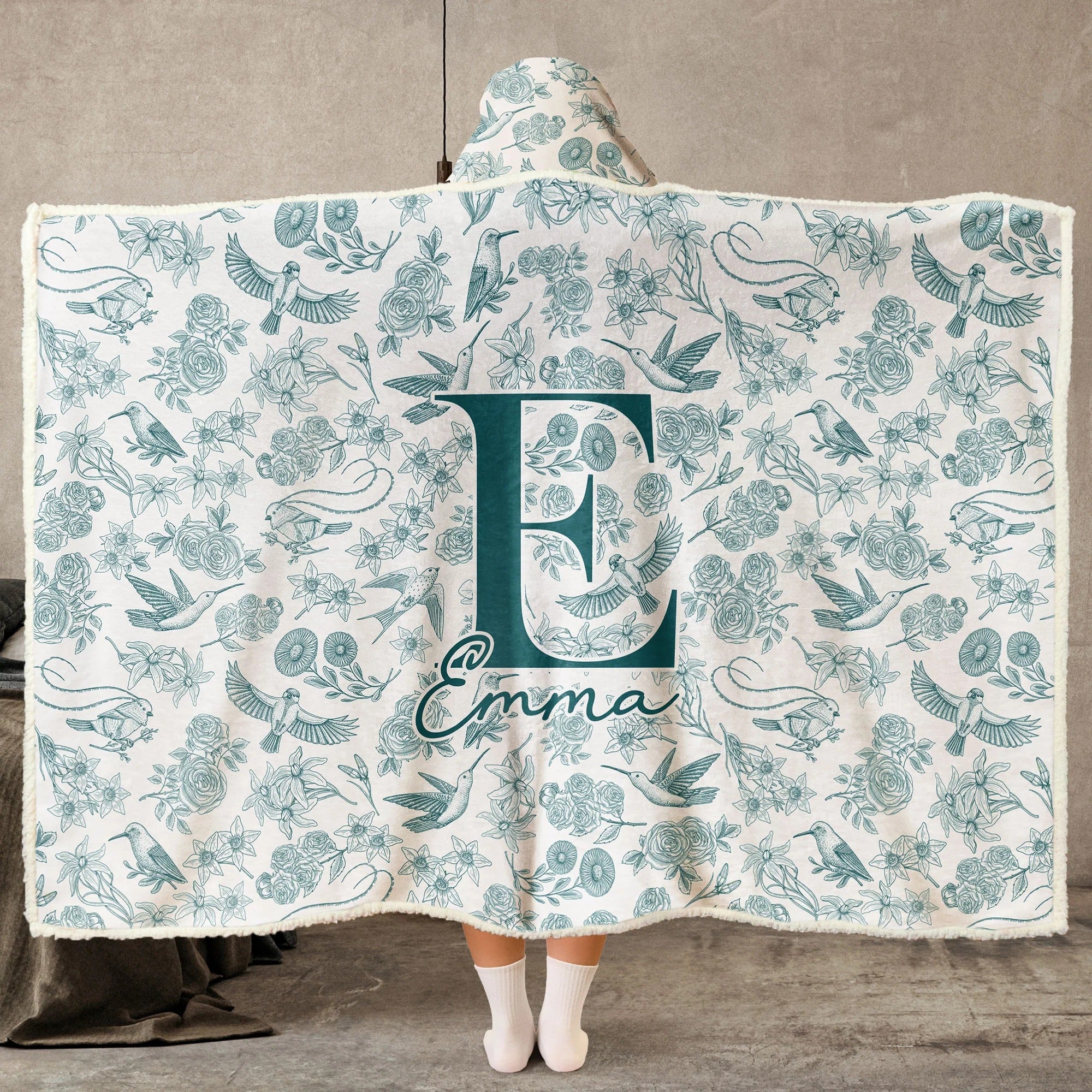 Toile De Jouy Floral Initial - Personalized Wearable Blanket Hoodie