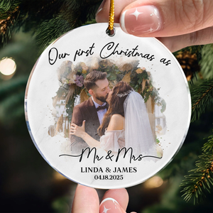 Watercolor Style Our First Christmas Married - Personalized Acrylic Photo Ornament