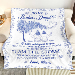 Introduce Whisper Back "I Am The Storm" – Personalized Blanket, the ideal gift for your brave and unstoppable daughter. This blanket is more than just a cozy throw; it offers warmth and comfort, but also serves as a mark of the unique bond and strength shared in your family. Let your daughter know how much faith you have in her by gifting her with this special blanket. This exceptional gift is perfect for countless occasions like birthdays, Christmas, anniversaries, or simply when the weather turns chilly.